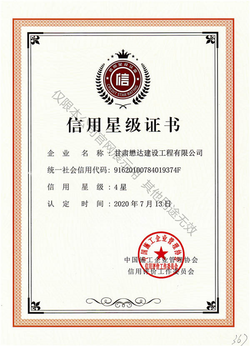 信用星级证书